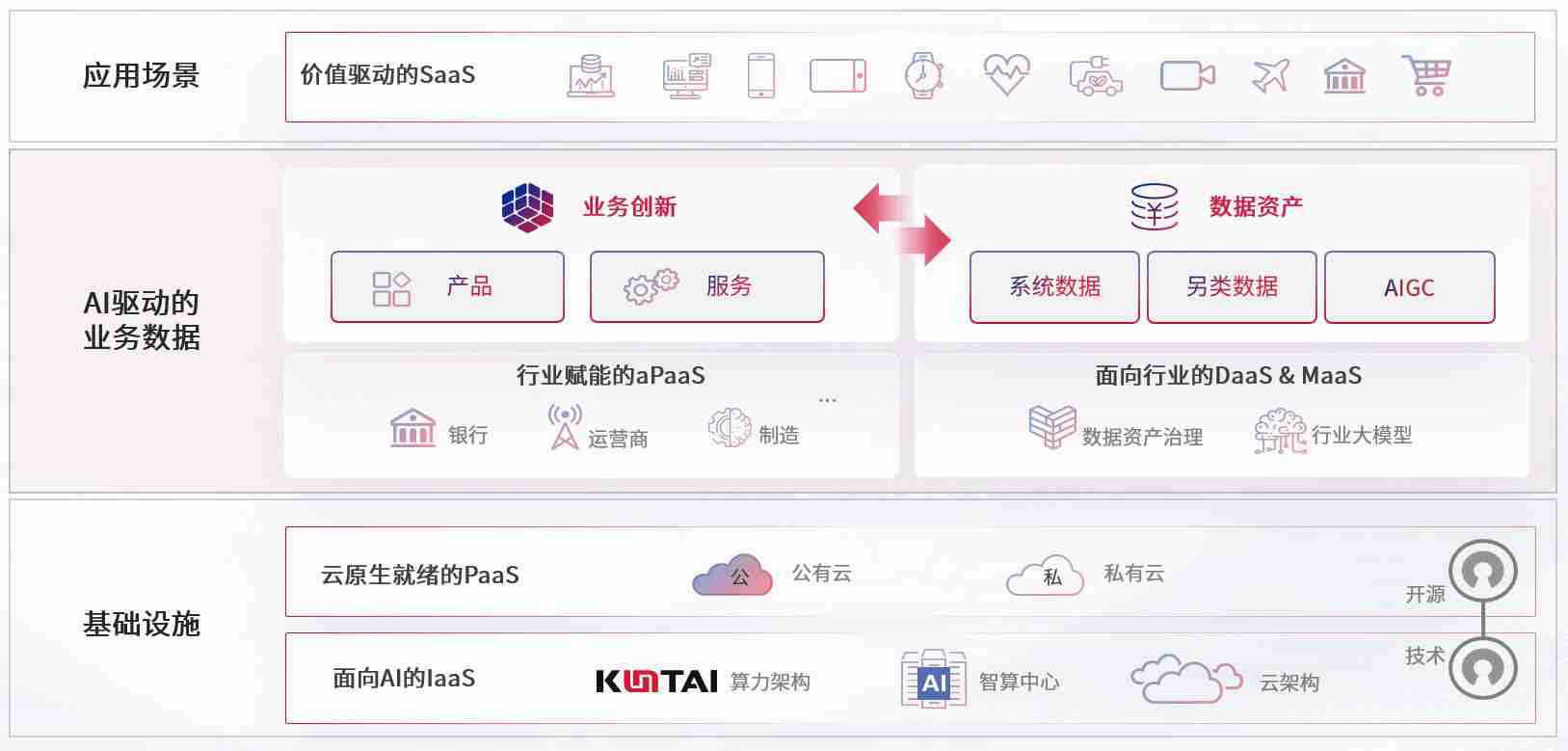 数字时代,,,,围绕企业数字化转型的关键要素,,,,伟德国际VICTOR1946数码开创性的提出数云融合战略和技术体系框架,,,着力在云原生、、、数字原生、、、AI原生和信创产业上架构产品和服务能力,,,为处在不同数字化转型阶段的快消零售、、、汽车、、金融、、、、医疗、、、政企、、、教育、、运营商等行业客户提供泛在的敏捷IT能力和融合的数据驱动能力,,,,构建跨界融合创新的数字业务场景和新业务模式,,,助力企业级客户建立面向未来的核心能力和竞争优势,,全面推动社会的数字化、、、、智能化转型升级。。。